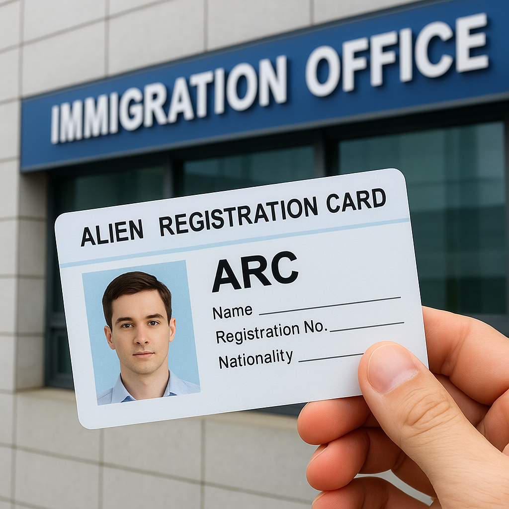 외국인등록증(ARC)은 한국에 90일 이상 체류하는 외국인에게 발급되는 공식 신분증입니다. (The Alien Registration Card is an official ID issued to foreigners staying in Korea for more than 90 days.)