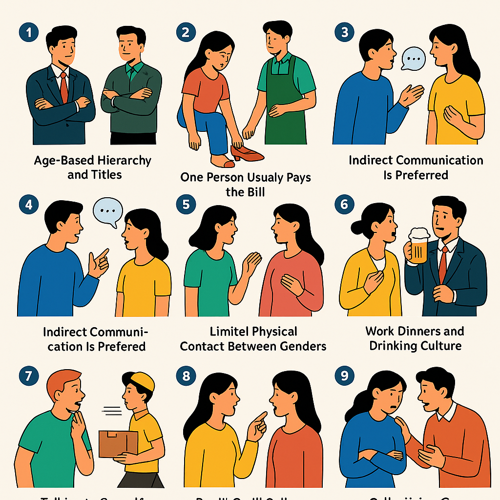 한국은 고유의 유교 문화와 빠르게 변화하는 현대 생활 방식이 공존하는 사회로, 외국인에게는 익숙하지 않은 문화적 요소들이 많습니다.